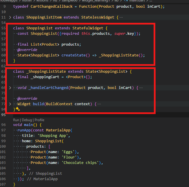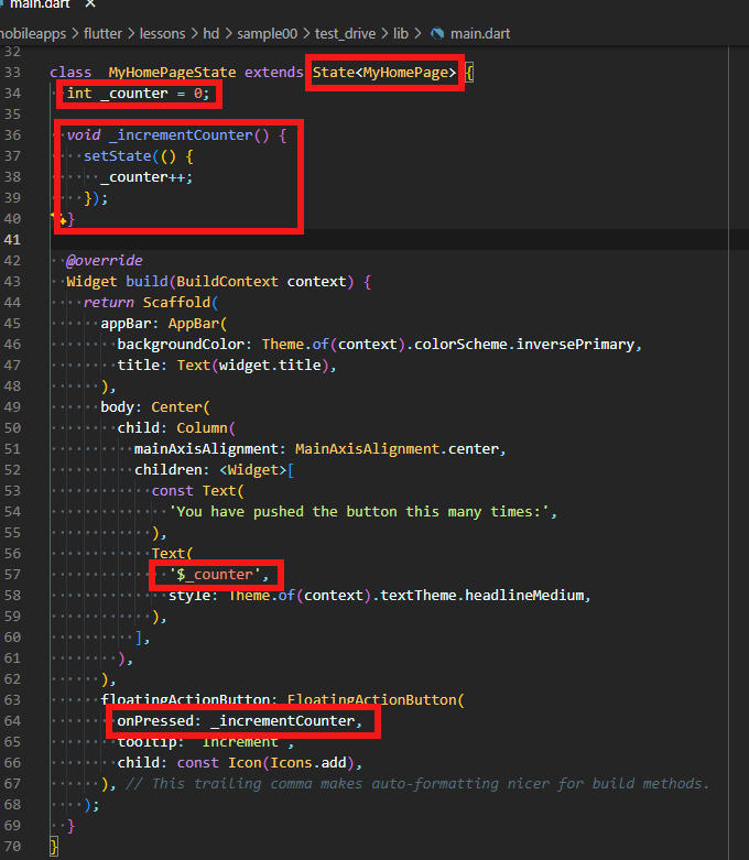 StatefulWidgetの中で、状態(State)を利用します。そのコードが次の部分です。